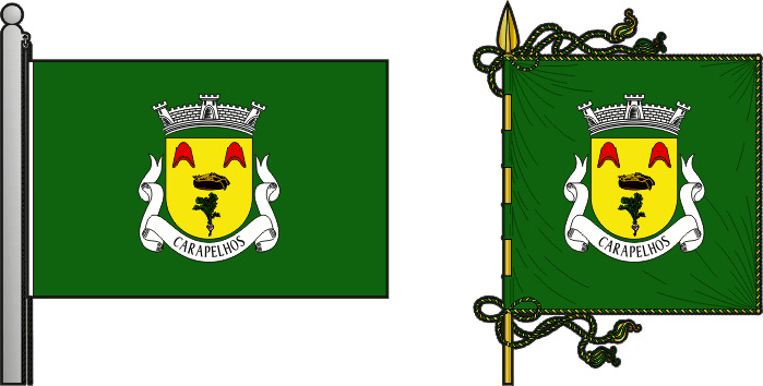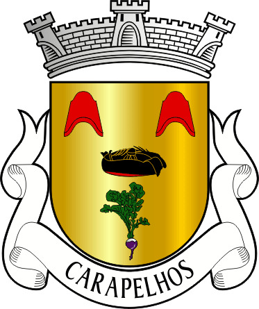 Armas - Escudo de ouro, chapéu desabado de negro, do traje de mulher gandaresa, forrado de vermelho, entre duas telhas do mesmo, posta em pala e nabo de púrpura, com sua rama verde. Coroa mural de prata e três torres. Listel branco, com legenda a negro: “ CARAPELHOS “.
